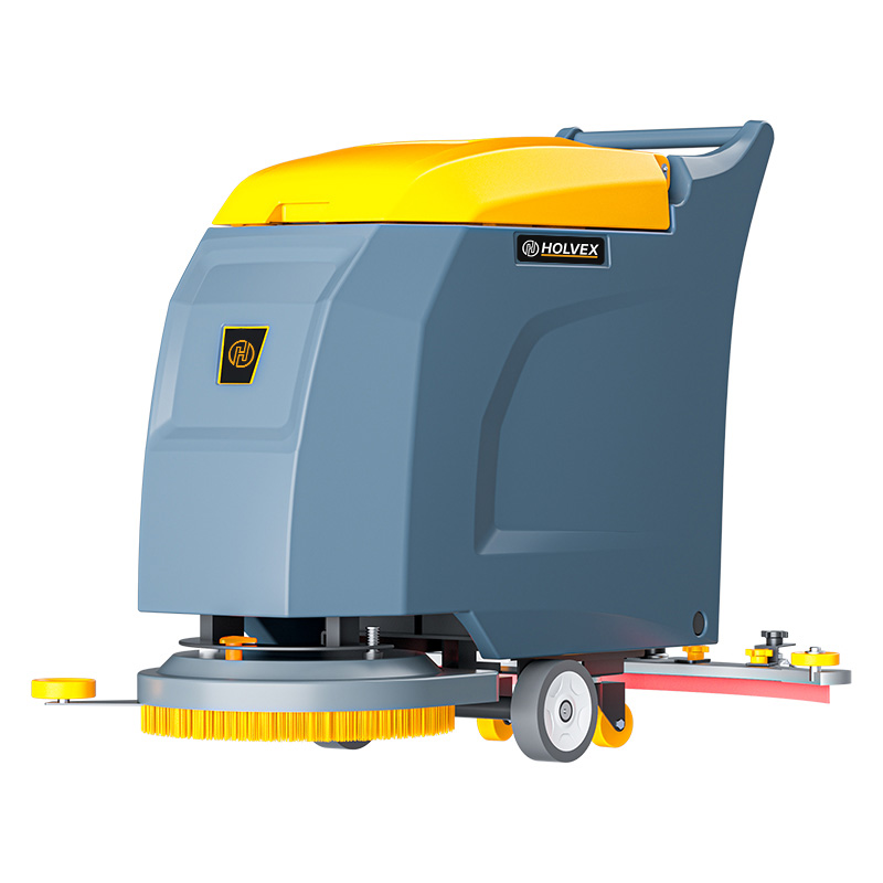 Effektive Bodenreinigung leicht gemacht – unsere kompakte, handgeführte Scheuermaschine sorgt mühelos für strahlend saubere Böden, auch auf engstem Raum.